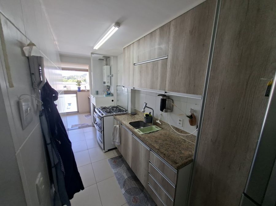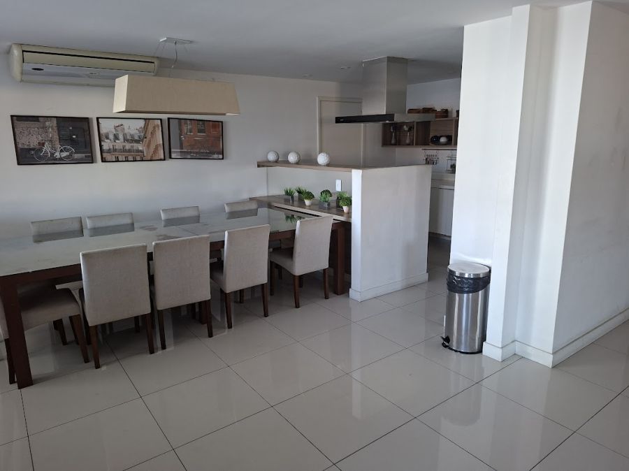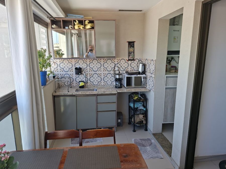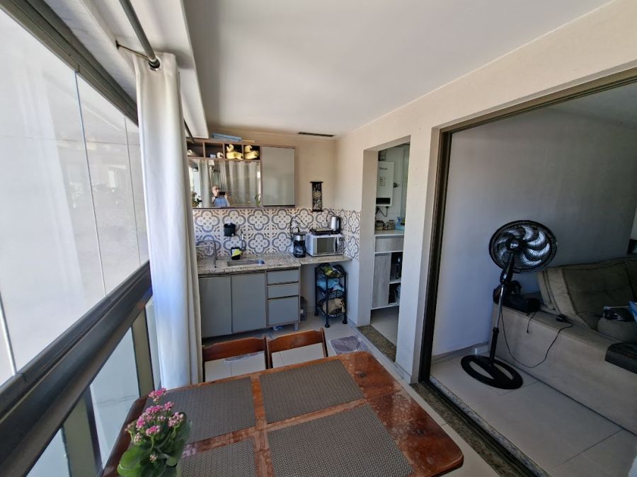 Um dos grandes diferenciais é a varanda com churrasqueira, que proporciona um espaço gourmet privativo com vista panorâmica, elevando o padrão de bem-estar do morador. O apartamento conta ainda com sistema de água quente e uma vaga de garagem garantida.