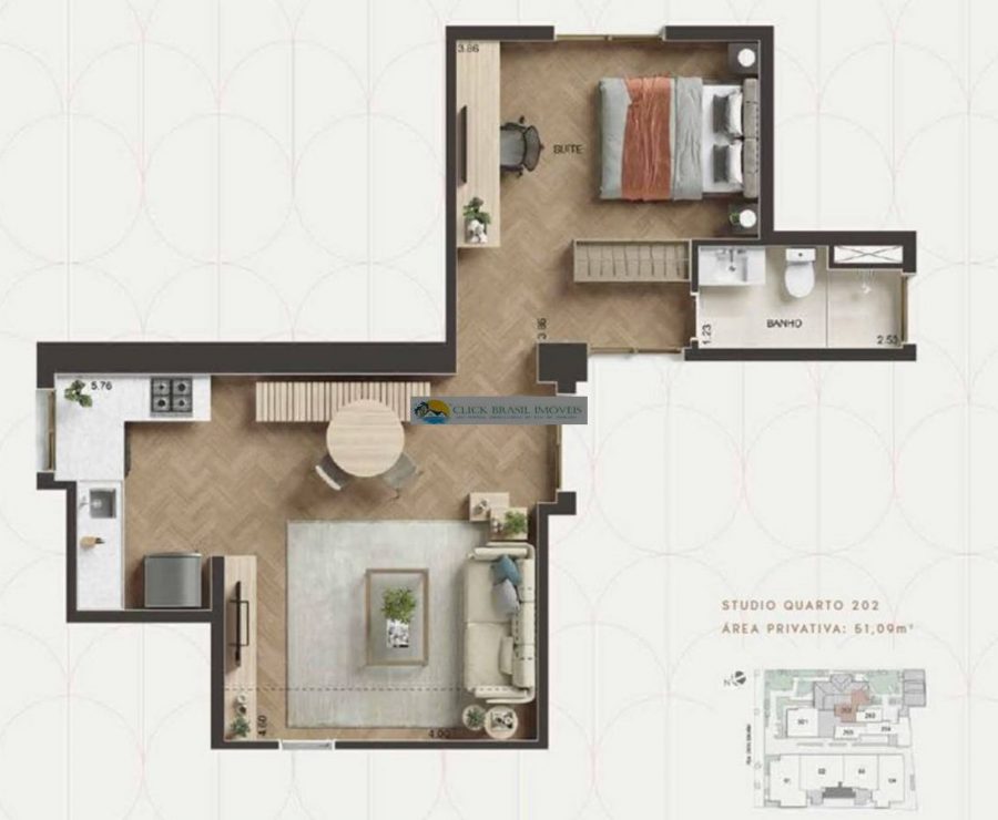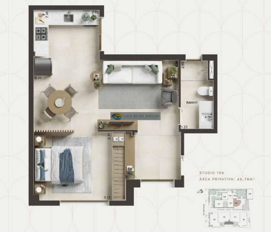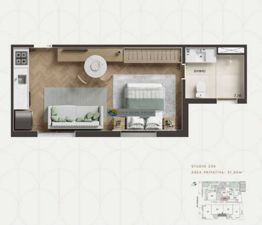 - Dormitórios1 Suítes1 Banheiros1
