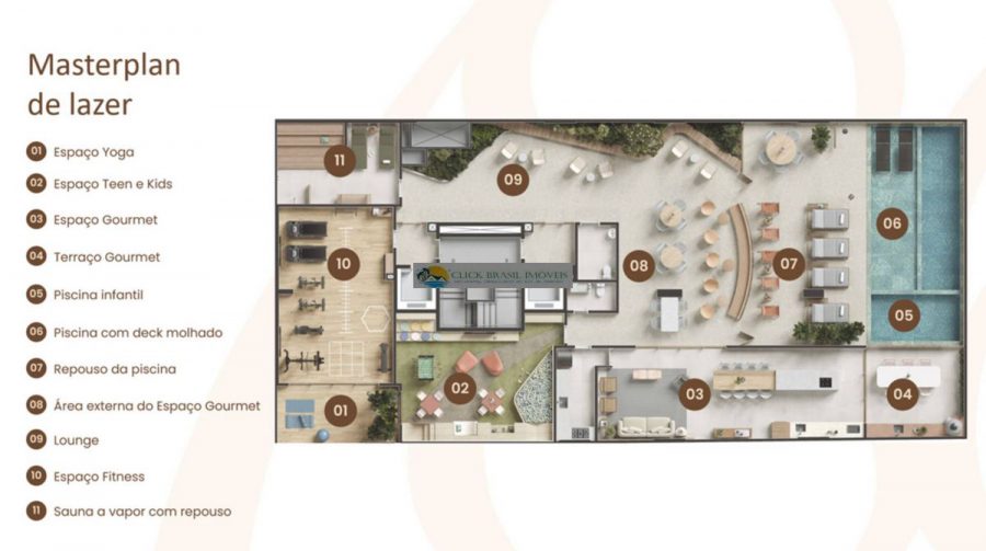 O lazer é um ponto alto, oferecendo um espaço completo para relaxamento e entretenimento. A piscina com deck molhado, sauna a vapor com área de repouso, terraço gourmet, sala de massagem, salão de beleza, sala de reunião, espaço teen e kids, academia completa e área de espaço delivery são apenas algumas das comodidades proporcionadas aos moradores.
