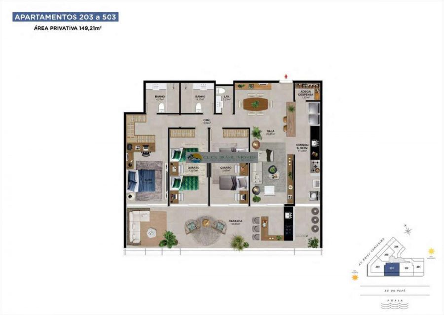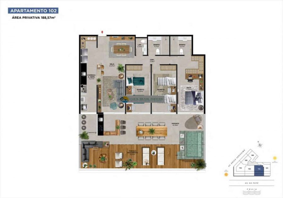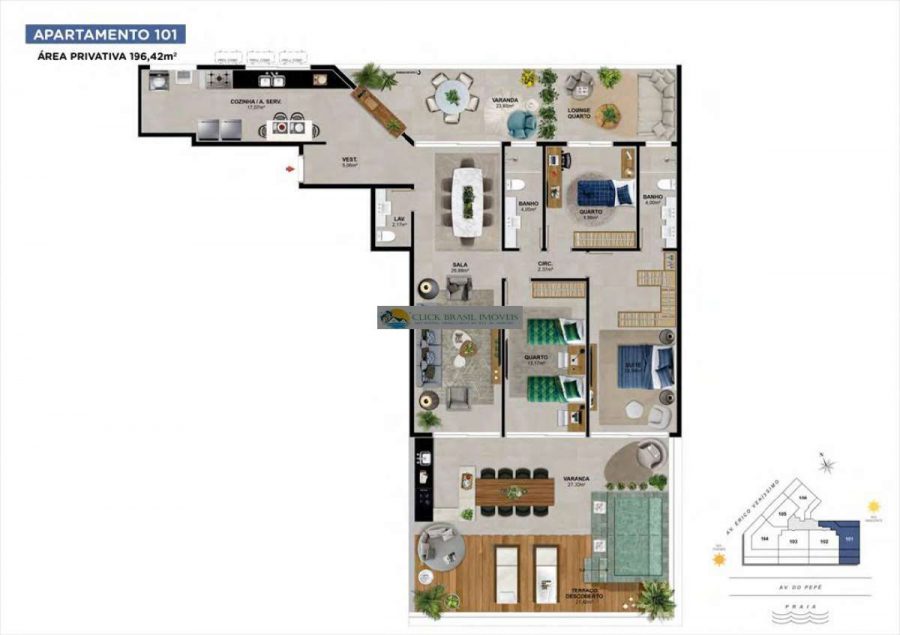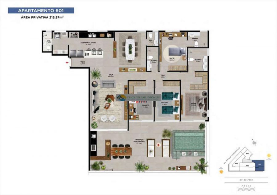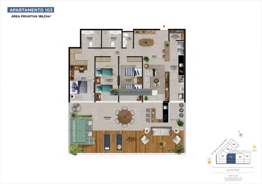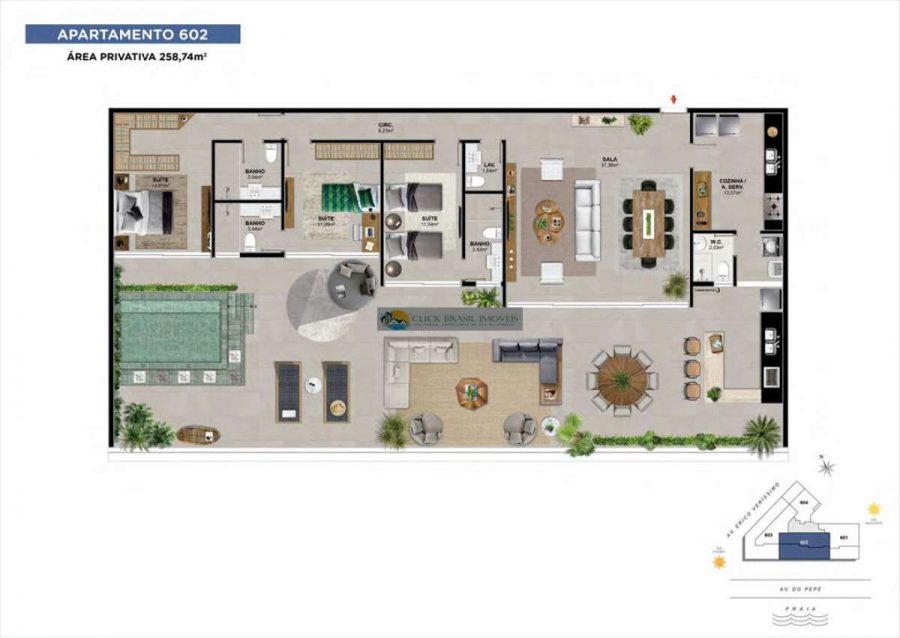 O Praia Av do Pepê Residencial Mar é um dos lançamentos mais aguardados do Rio de Janeiro. Localizado na Praia do Pepê, de frente para o mar em um dos pontos mais cobiçados da orla da Barra da Tijuca, no terreno do antigo Hotel Praia Linda. Apartamentos e coberturas de 3 e 4 suítes de 137m² a 515m² com Lazer completo, pelo menos 2 vagas por unidade e box privativo.