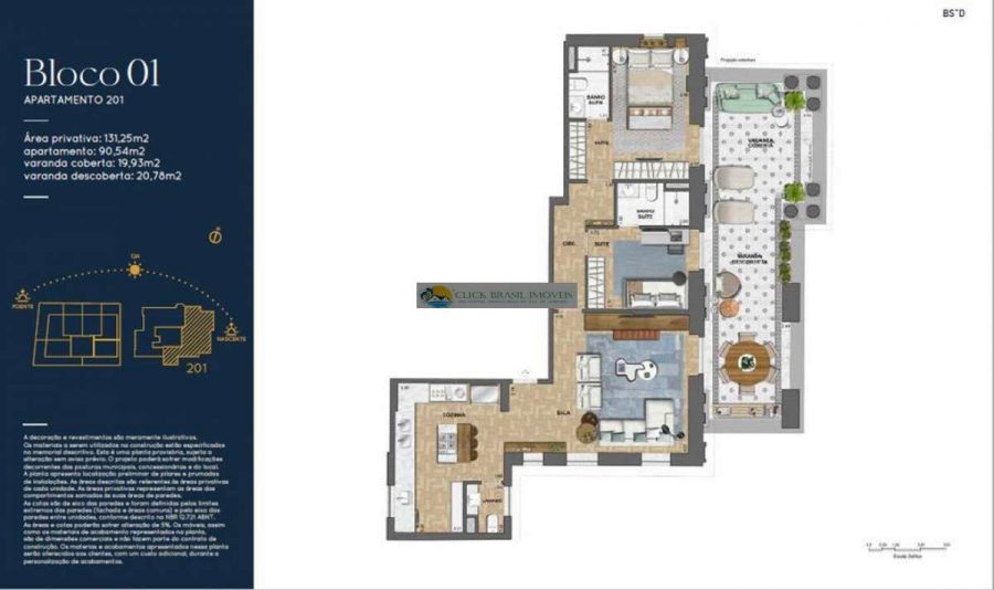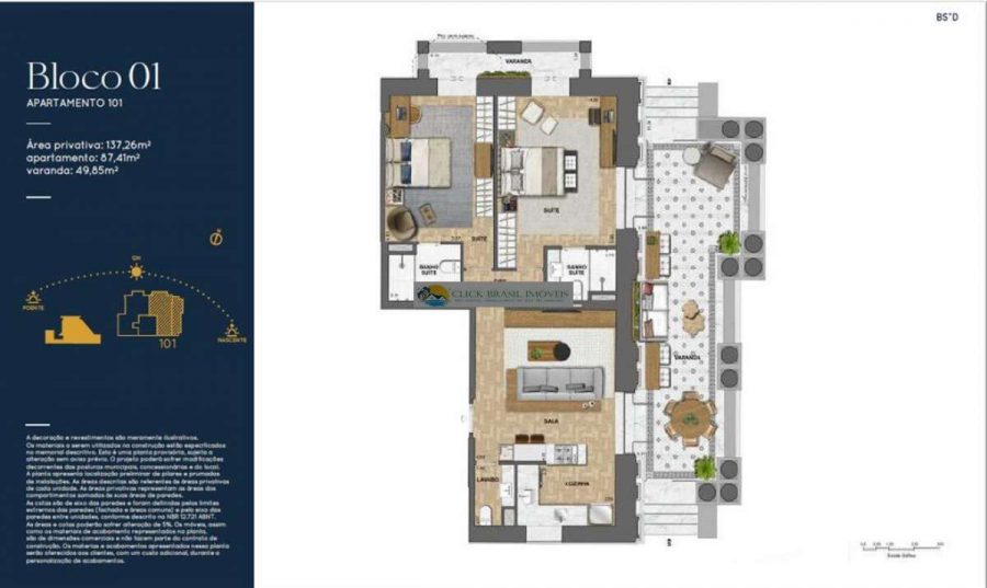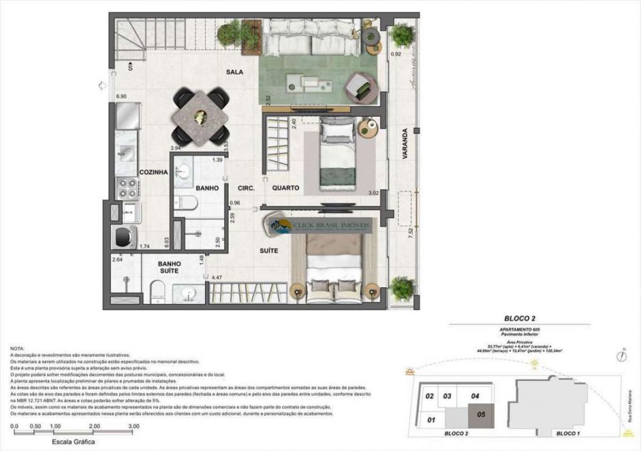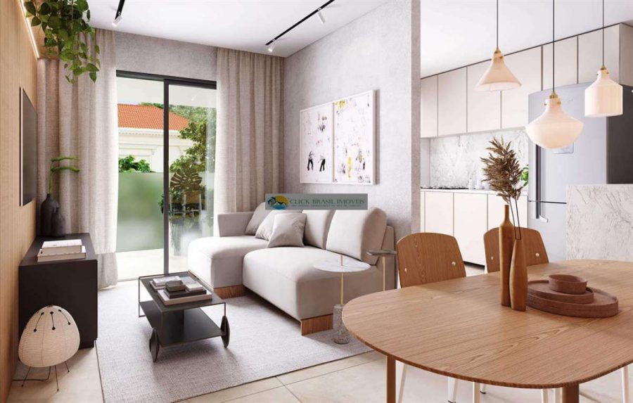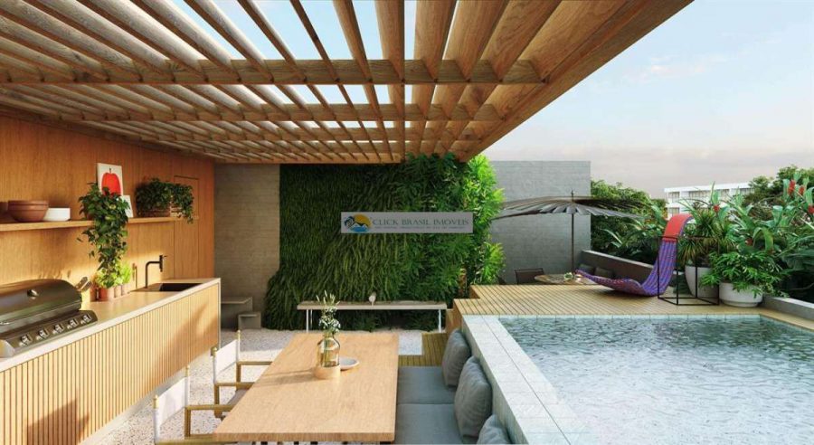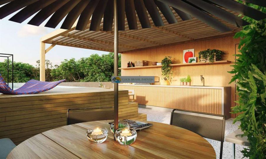 Coberturas duplex contam com metragens entre 120 m² e 137 m², 2 quartos, 1 suíte, varanda espaçosa, terraço descoberto, jardim e vaga de garagem.