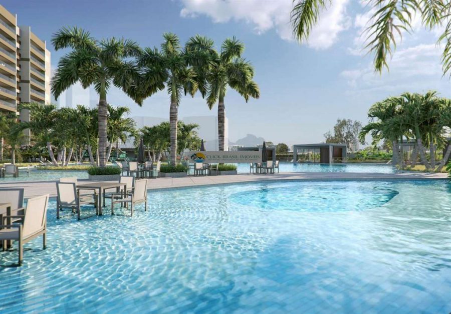 Piscina com ilhas e espécies de plantas pensadas para embelezar ainda mais o ambiente.