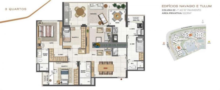 Coberturas Lineares com 3 Suíites de 183 m² a 188 m² (3 Suítes)